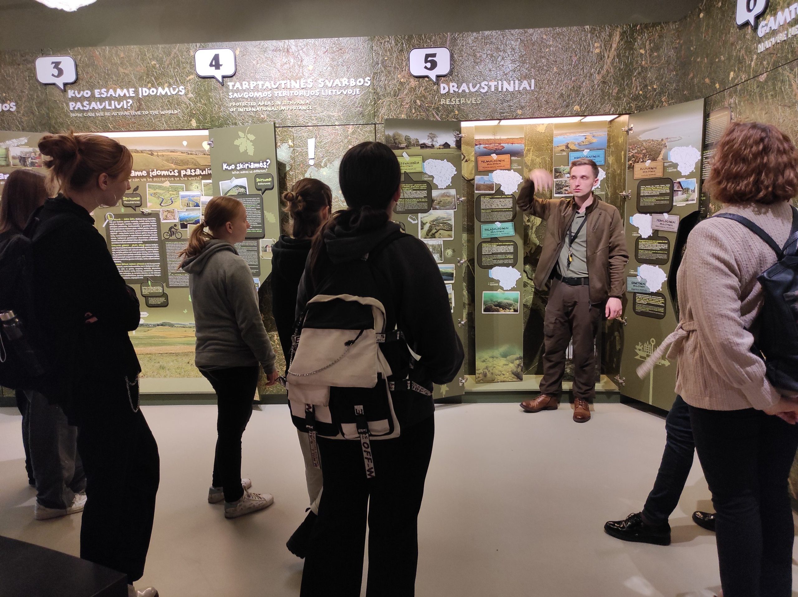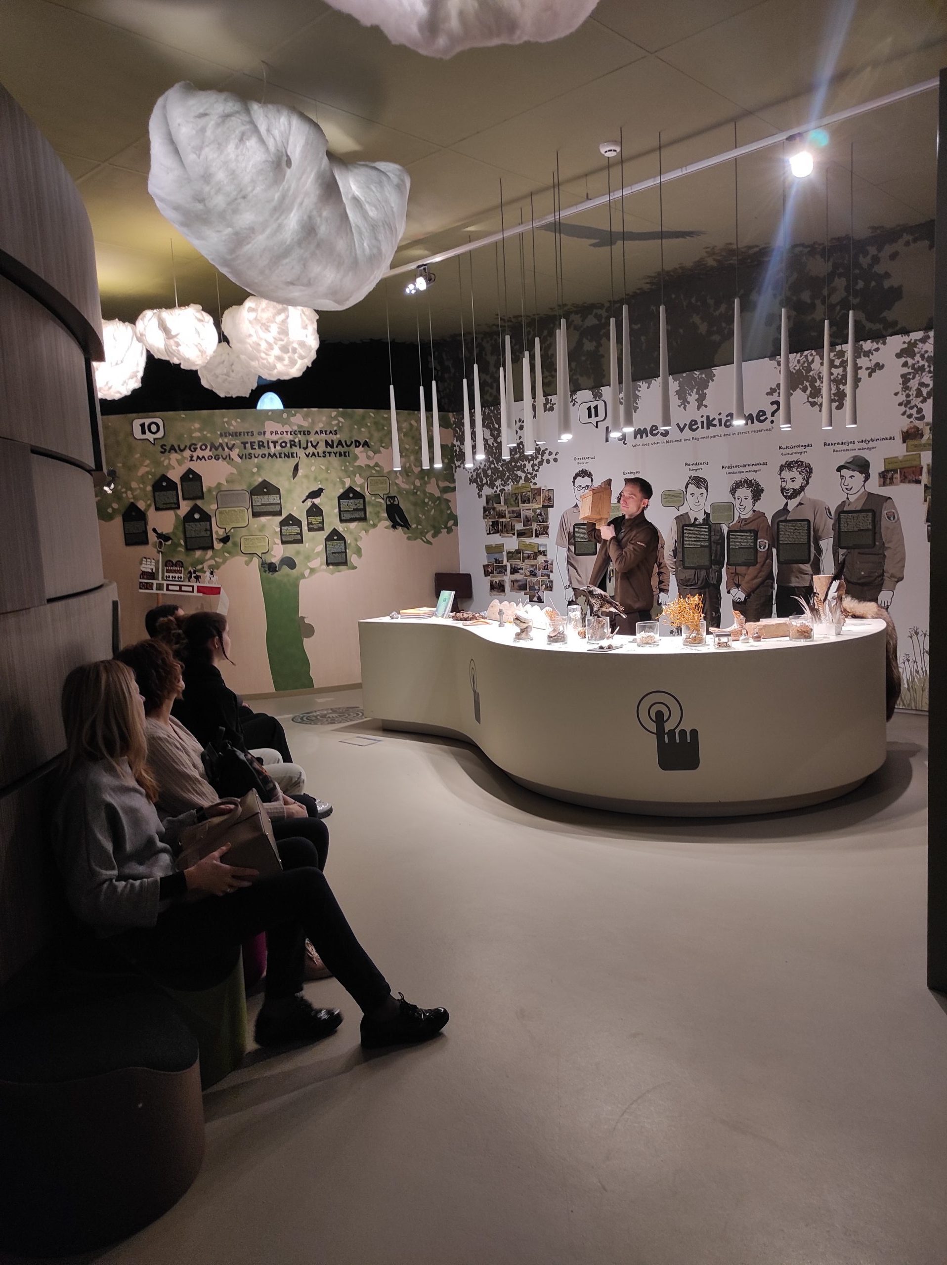 Kiekvienas ekspozicijos lankytojas tapo aktyviu dalyviu, galinčiu liesti, klausyti, pajausti. Išskirtinė nacionalinių ir regioninių parkų, rezervatų vertė iliustruota ne tik vaizdais, bet ir konkrečiais daiktais. Kino salėje – šikšnosparnių buveinėje, žiūrėjome filmus, klausėmės paslaptingų gamtos garsų. Mokiniams patiko laboratorinis stalas – klaustukas, kur įvairios gamtos mįslės paaiškinamos filmuotais siužetais.