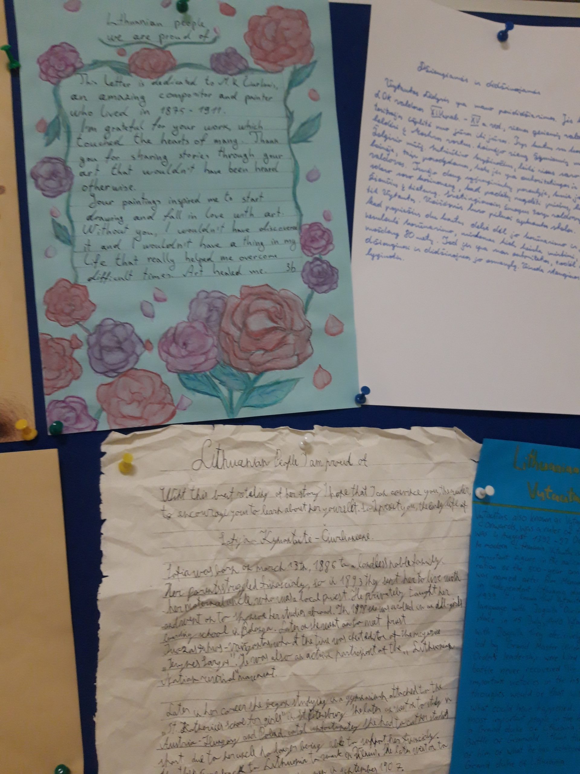 Europos kalbų dieną rugsėjo 26 d. gimnazijos patalpas papuošė stendas su mokinių dedikacijomis, kuriomis džiaugėsi visa gimnazijos bendruomenė.