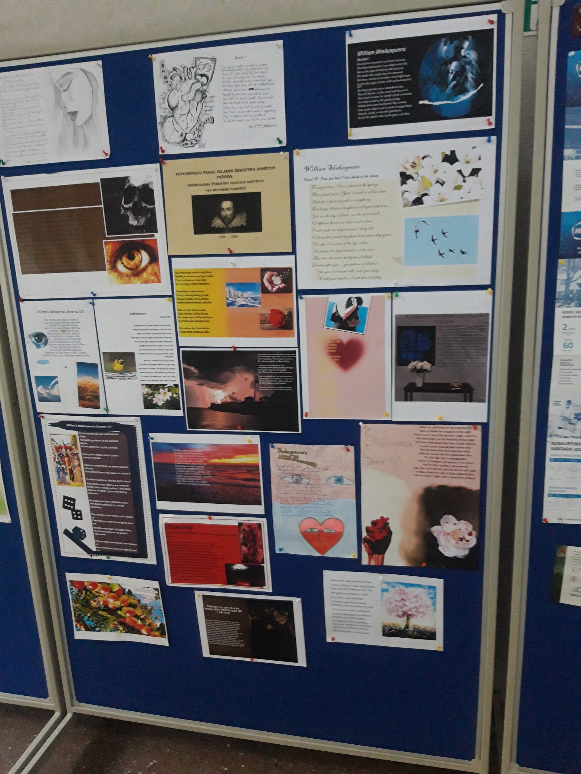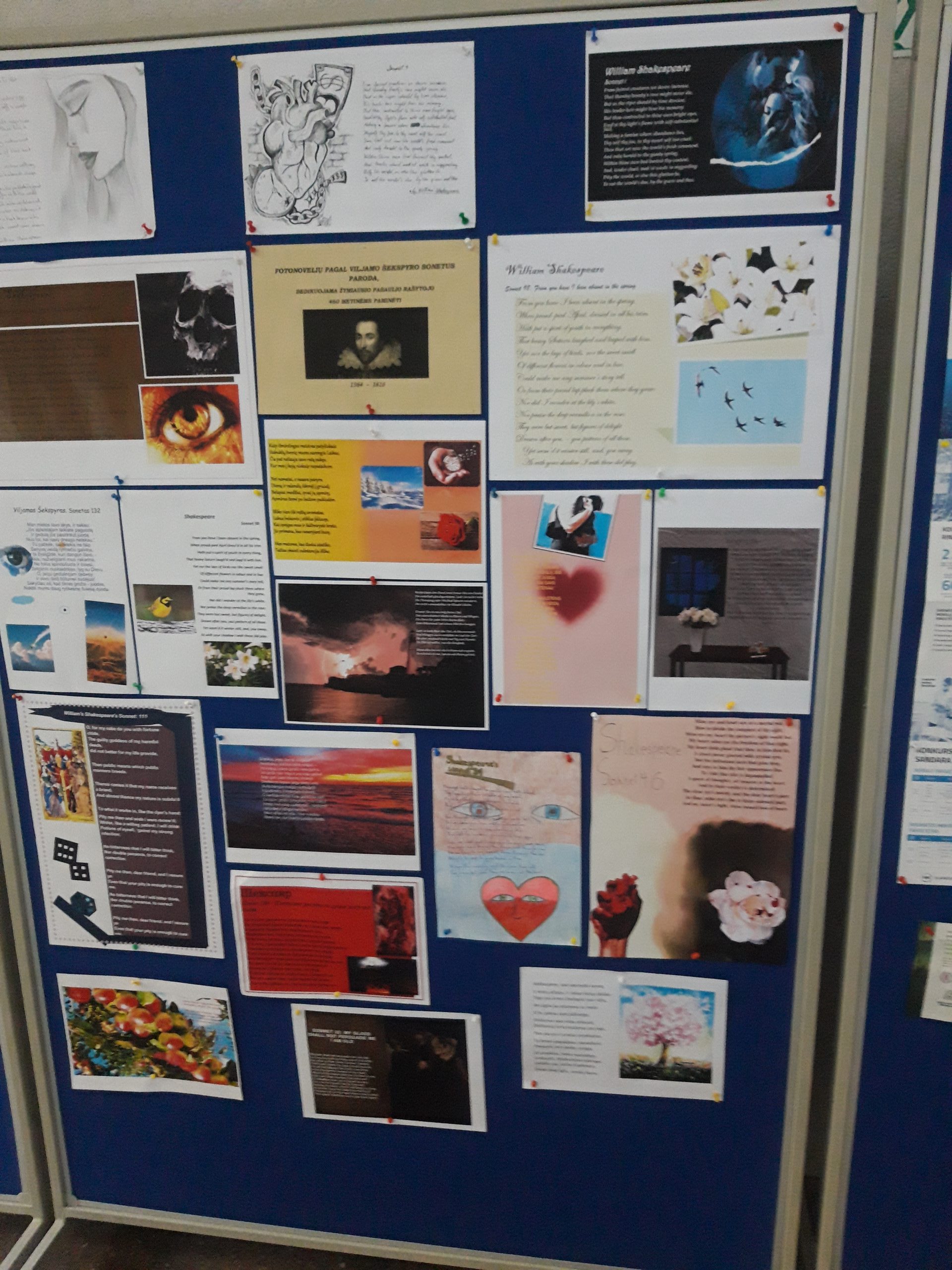 Viljamas Šekspyras savo unikalumu žavi net ir po mirties. Puoselėdami jo atminimą, balandžio 22–29 d. lietuvių kalbos bei užsienio kalbų pamokų metu I–III kl. gimnazistai kūrė darbus parodai ,,Fotonovelės pagal Viljamo Šekspyro sonetus“, kuri skirta vieno žymiausių pasaulio rašytojo 460-osioms metinėms paminėti.