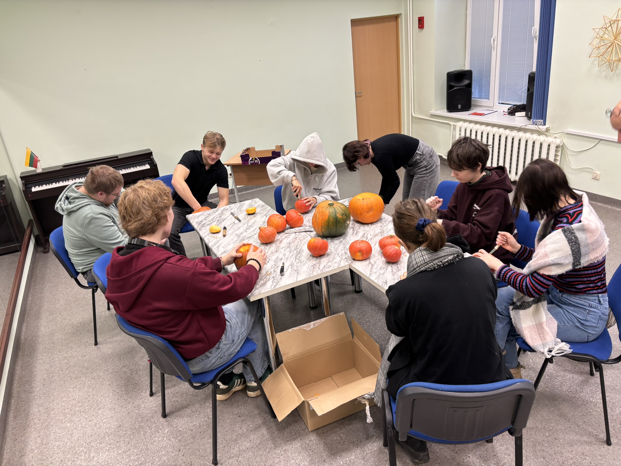Artėjant rudens pabaigtuvėms – bendruomenė nusprendė sukurti jaukią ir šventišką atmosferą mokykloje. Mokiniai, pasitelkę kūrybiškumą ir gerą nuotaiką, ėmėsi moliūgų skaptavimo tradicijos, kuri pastaraisiais metais vis labiau populiarėja Lietuvoje.